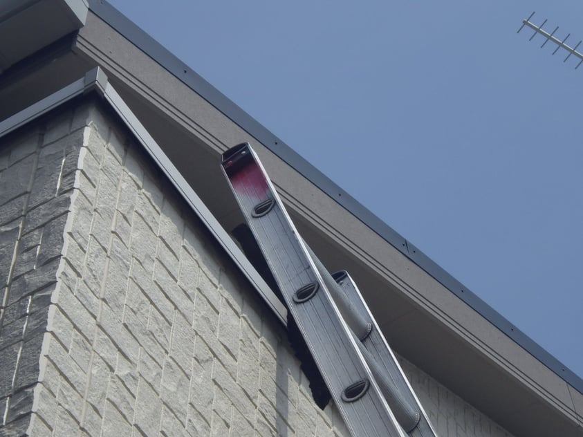 屋根のケラバ部(袖部)に施工してある板金が風であおられてパタパタとなるので直して欲しいとご依頼を受け、福島県はいわき市にお伺いしました。