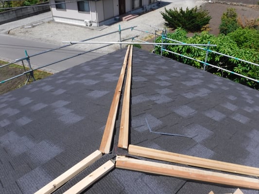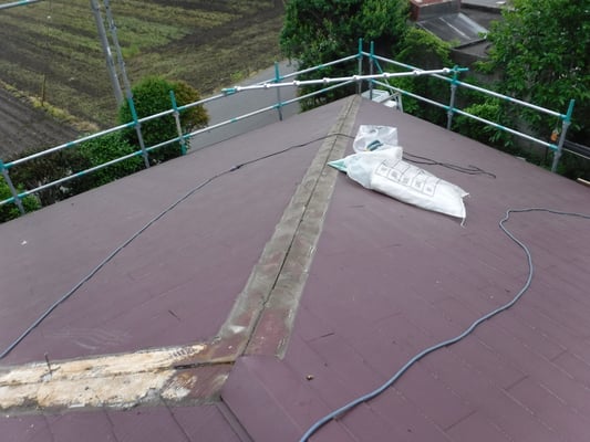 屋根材本体(平部)の施工が終わったら、次は棟部の施工となります。
