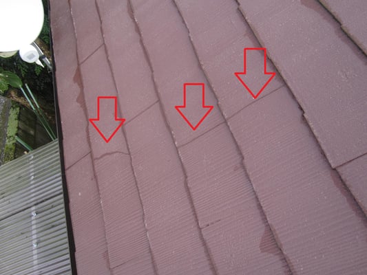 既存の化粧スレートに亀裂が入っており、そこからの雨漏れが懸念されます。