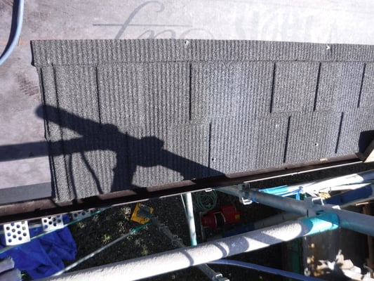 またそれとともに、塗装をする際に化粧スレートの重ね目を浮かさず塗料を塗っていたようで、そこが雨水の出口を塞ぐかたちになり、ここも雨漏れの要因の一つになっているようです。