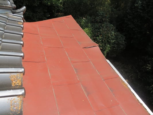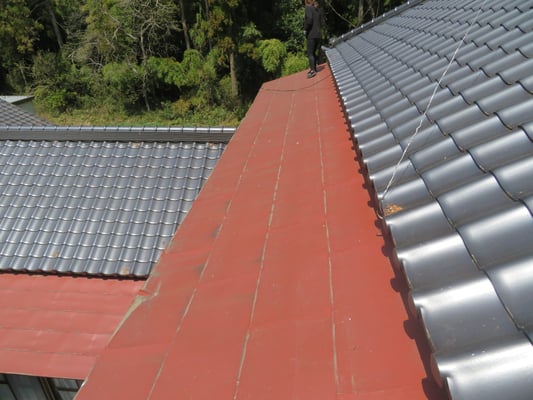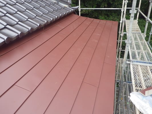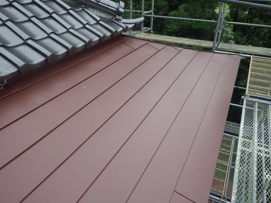 こちら腰葺き屋根(奴葺き)の横葺き板金屋根部分となります。