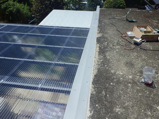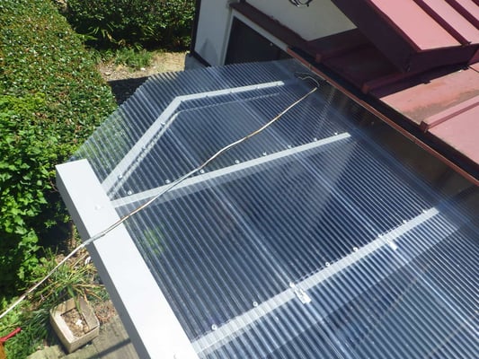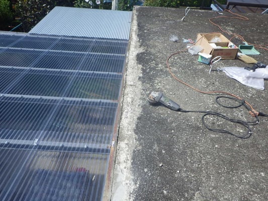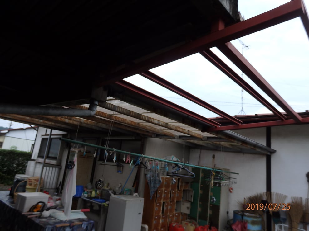 既存波板ポリカーボネートを解体した様子です。
