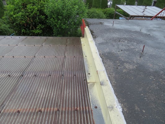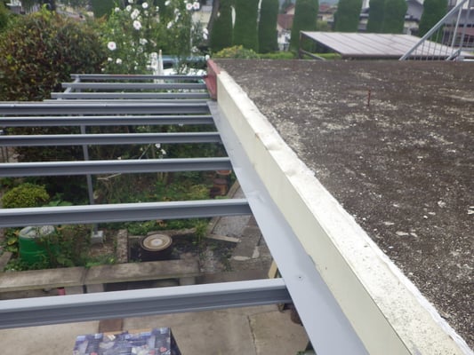 隣のスラブ屋根との取り合いに水切取付が終わり、すべての工事が完了しました。