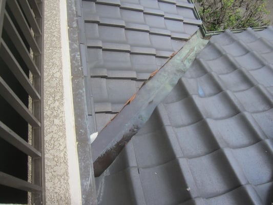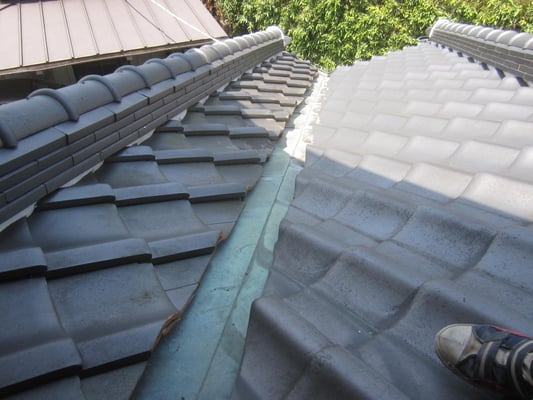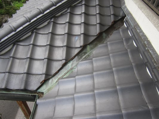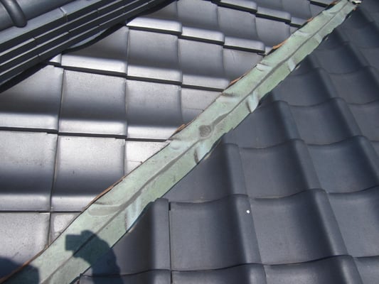 高根沢町で和瓦屋根の銅製谷板金に専用皮膜剤を塗布する工事を行いました。