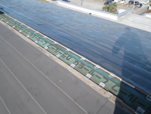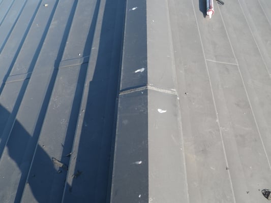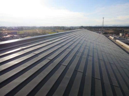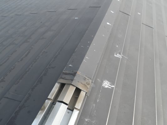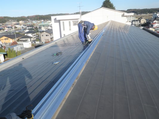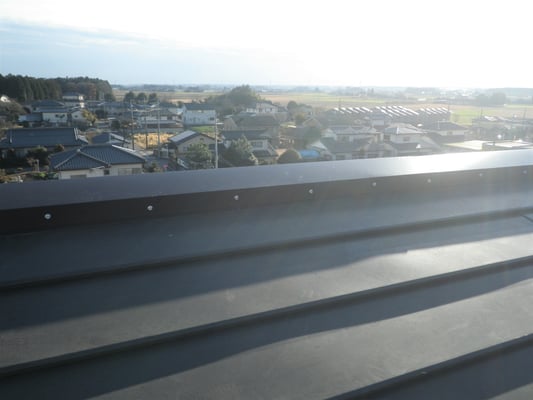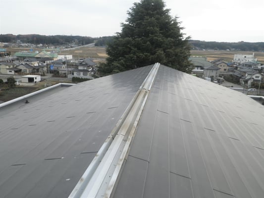 横葺き板金屋根の集合住宅で、強風により棟板金が飛散してしまったという連絡をいただき、お伺いしました。