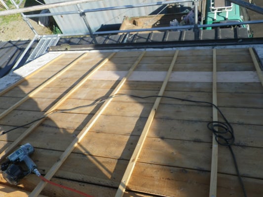 次に既存の野地板上に垂木を取付け、新しい野地板を貼ります。