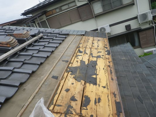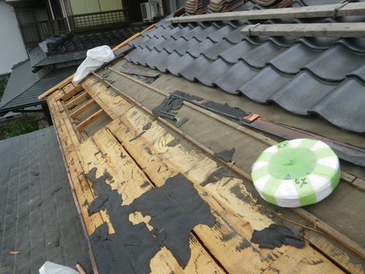 経年劣化のため防水紙(ルーフィング)が傷んでいる様子が窺えます。