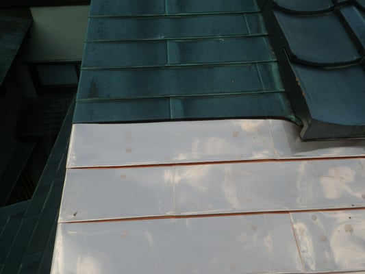こちら腰葺き屋根(奴葺き)の銅板部分となります。