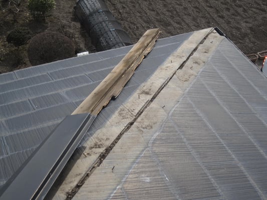 棟包み板金という屋根の部位が外れ、脱落していました。