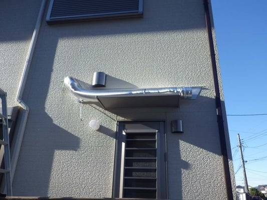 本来このダクトは無かったのですが、排気口と吸気口が隣り合わせでになっており、排気した空気を吸気してしまっている事が住んでみて分かったそうです。