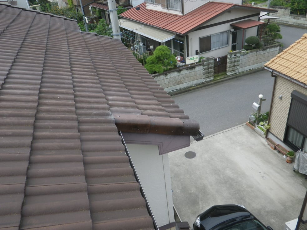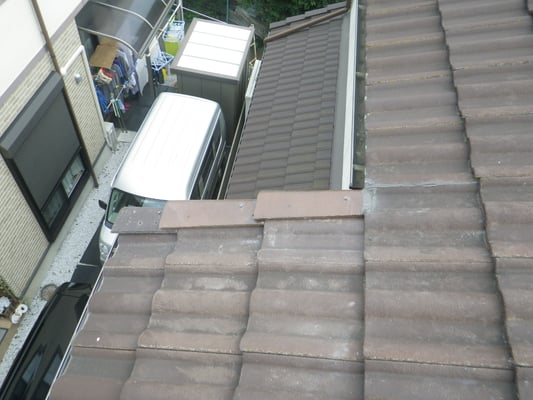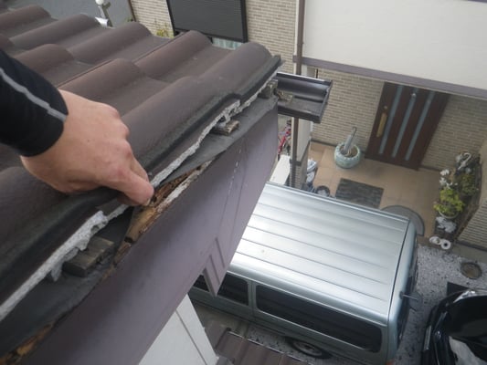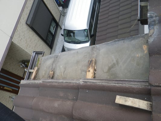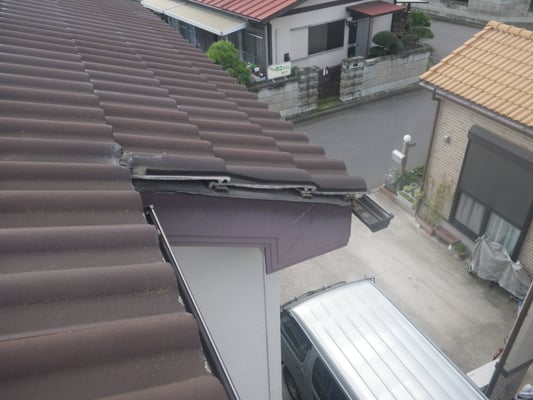 袖瓦(ケラバ部の瓦)が破損して平瓦が剥き出しの状態です。