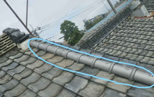 既存の漆喰を置く部分の瓦を棟側から軒先まで全て綺麗に掃除します。
