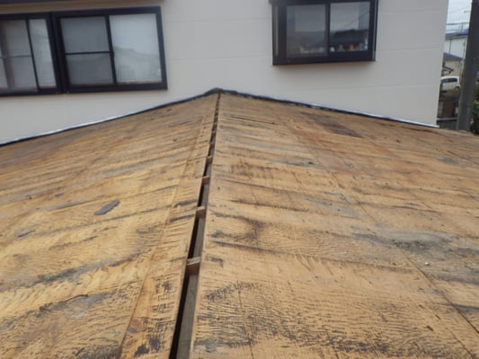 既存の防水紙(ルーフィング)がかなり傷んでいる様子が窺えます。
