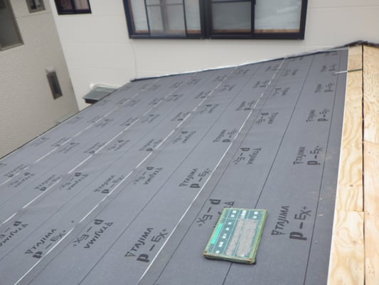 今回使用するのは田島ルーフィングの『PカラーEX+』。改質アスファルトルーフィングとして、優れた基本性能とコストパフォーマンスを誇る下葺材です。