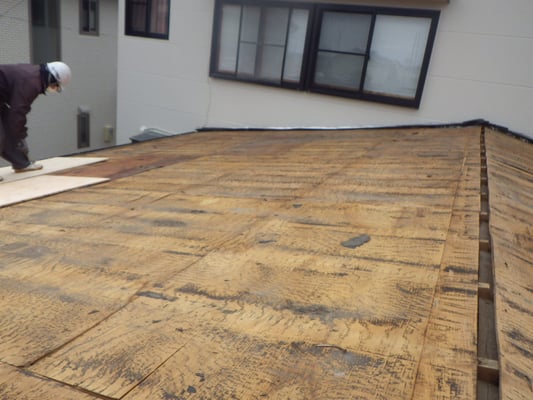 全面に新規の野地板と防水紙(ルーフィング)を施工します。