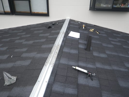 最後に棟用水切を固定し、専用の棟包みを施工し完了です。