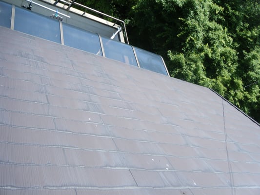 化粧スレート用 後付け雪止め金具の設置工事が完了した様子です。