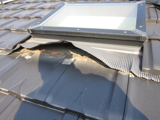 トップライト付属の鉛板が大きく浮き上がってしまっているのが確認できます。