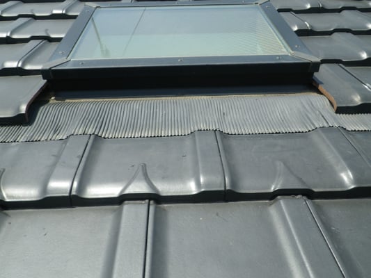 最後に屋根材に鉛板をシワが寄らないよう馴染ませながら押し当てていき、工事が完了しました。