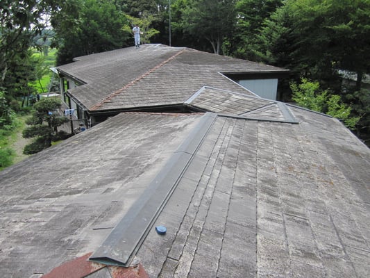 葺き替える屋根材は決められていないようでしたので、既存屋根材を撤去することなく葺き替えが可能なTルーフという屋根材をご提案させて頂きました。