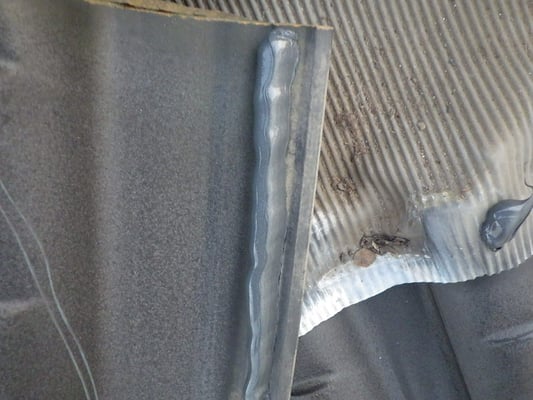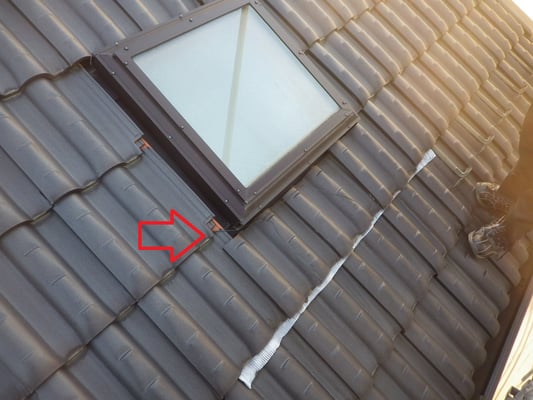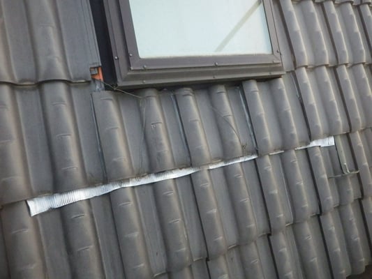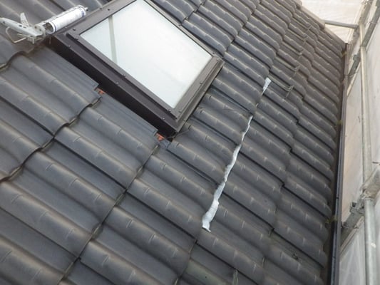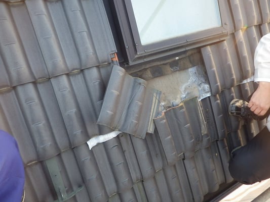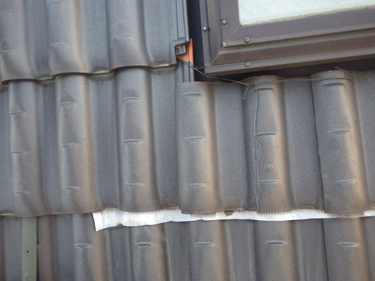 地瓦とトップライト付属の鉛板の接点に専用シリコンコーキングを施します。