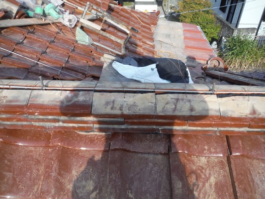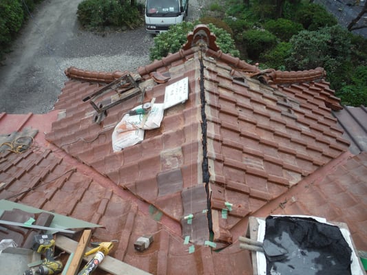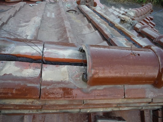 谷瓦を納めなおしたら、付近の棟瓦を積み直していきます。