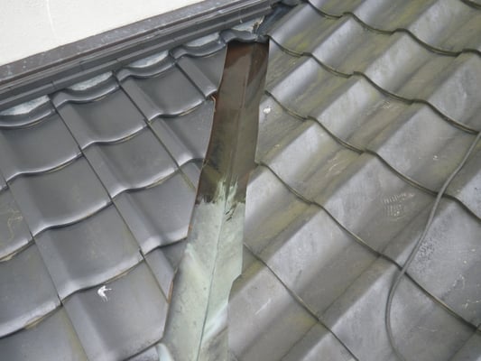 瓦との取り合い部の銅板が腐食しているのが確認できます。