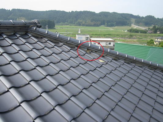 棟内部の土台粘土が奥からえぐられていることから、棟瓦から雨水が侵入していることが分かります。