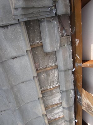 雨漏れ箇所付近の地瓦をめくると雨水が流れた跡が確認できました。