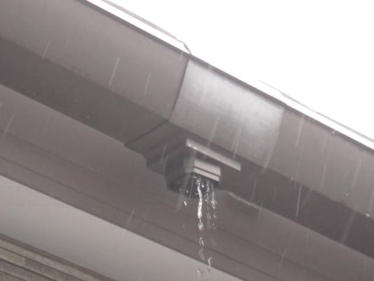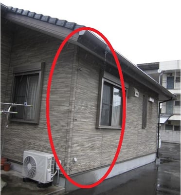 今回、赤丸印を付けた箇所の竪樋を復旧する内容となります。