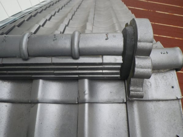 和瓦屋根の「棟」の部分から瓦が脱落してしまっている箇所の補修工事を行います。
