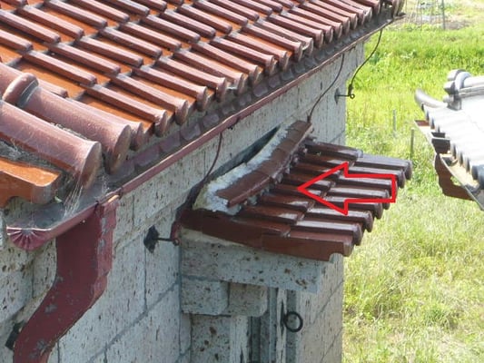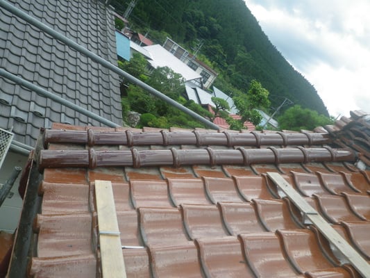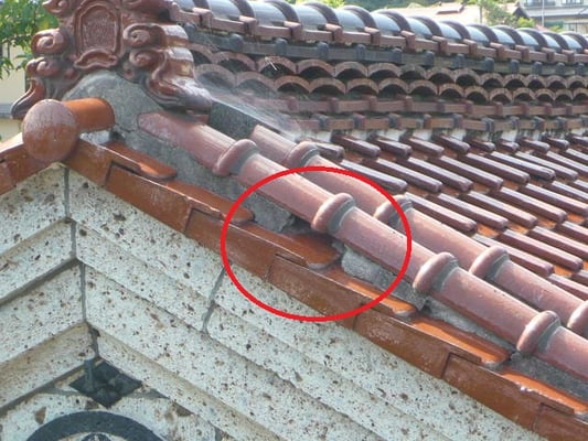 地震の影響でしょうか?瓦が全体的にズレ動いた形跡があり、土台となる部分が脱落していました。