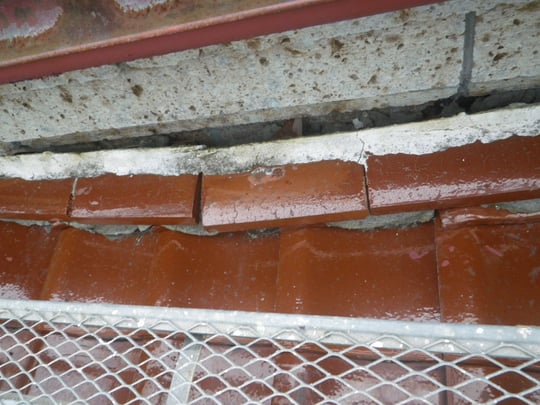 袖瓦と地瓦の隙間からの雨水の侵入が懸念されます。