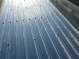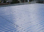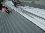 既存の金属屋根(折版屋根・立平屋根等)の上に輻射熱を97%カットする遮熱材を接着カバーする工法工事です。